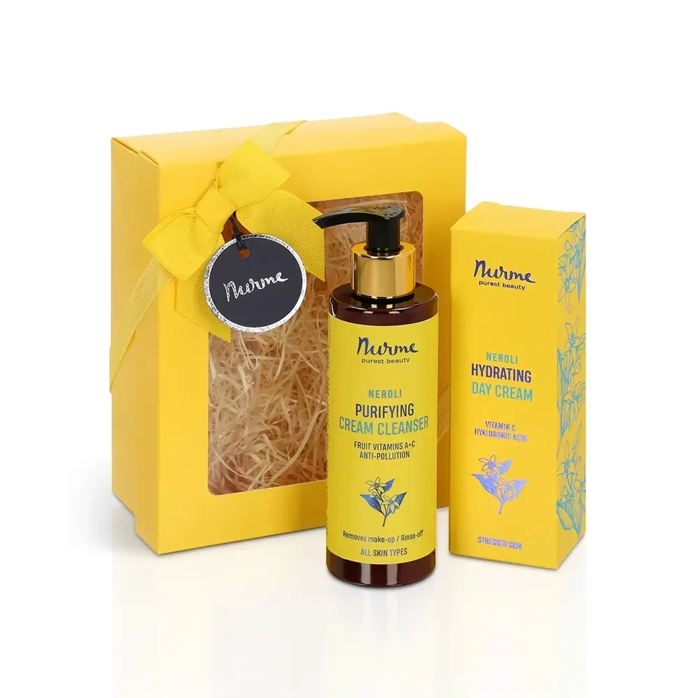 Kinkekomplekt sisaldab Nurme looduslikku neroli puhastavat kreem-vahtu (200ml) ja niisutavat päevakreemi (50 ml) kenas kinkekarbis.