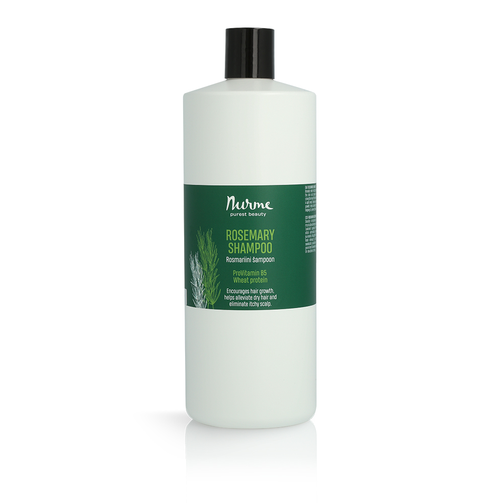Nurme rosmariinišampoon on loodud peanaha õrnaks, kuid tõhusaks puhastamiseks. Terve ja tasakaalus peanahk loob tingimused, et juuksed saaksid kasvada tugevaks ja elujõuliseks. Rosmariini eeterlik õli on tuntud oma värske ürdise aroomi poolest ning pakub pesurutiinile kosutust. Provitamiin B5 (pantenool) aitab säilitada juuste niiskustasakaalu ja muudab need kergemini kammitavaks. Hüdrolüüsitud nisuproteiin toetab juuste pehmust ja elastsust. Šampooni õrn koostis puhastab peanahka ja juukseid ilma liigset kuivatamata, sobides seega hästi ka igapäevaseks kasutamiseks.